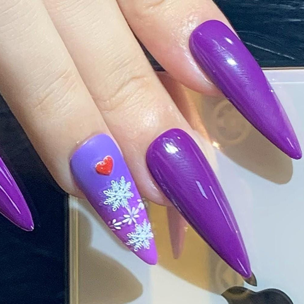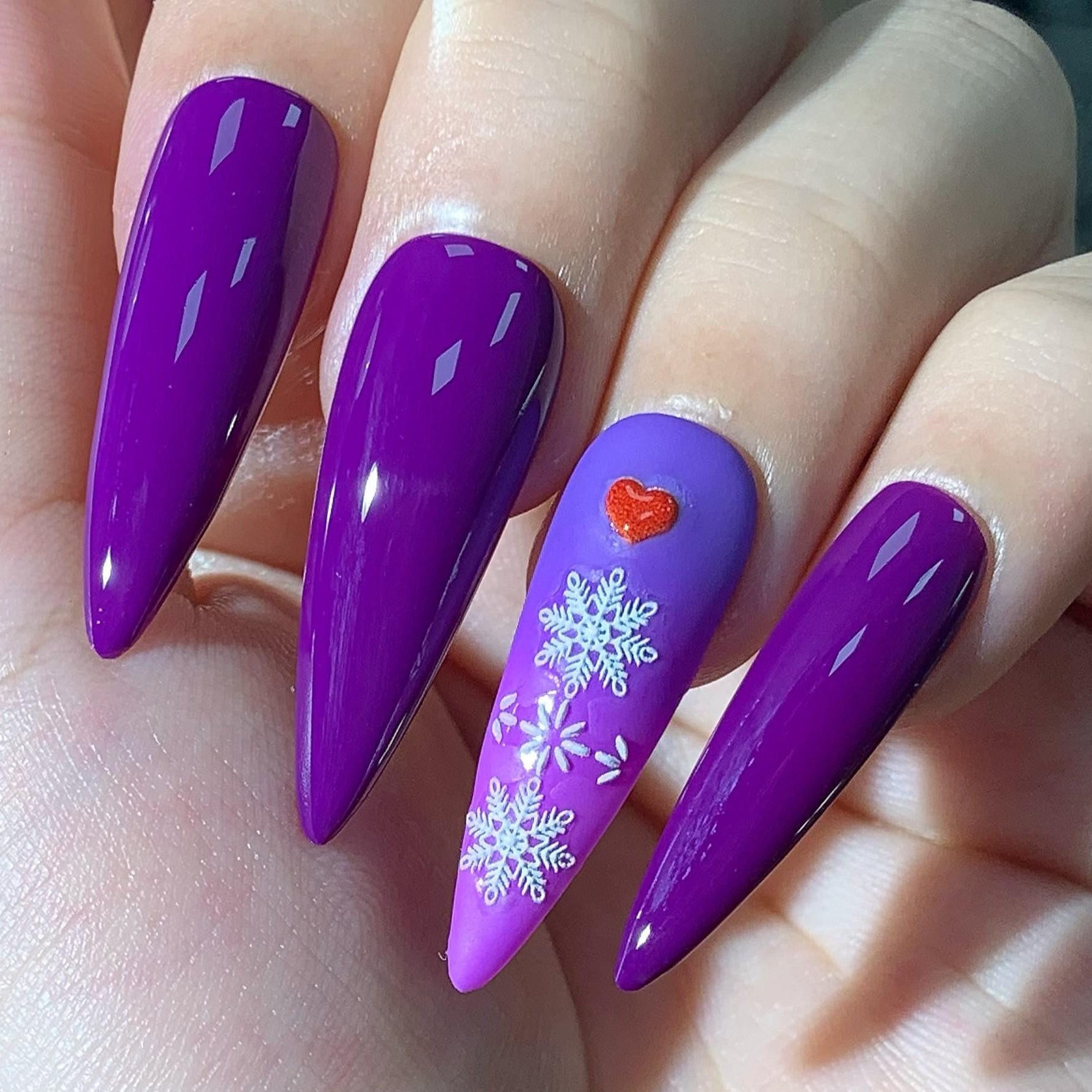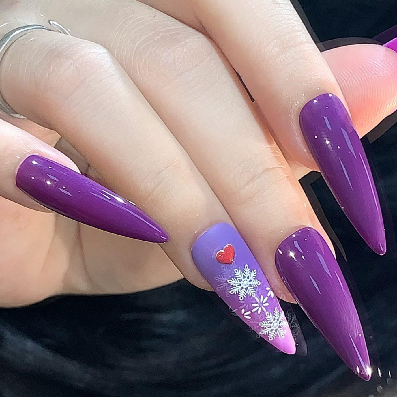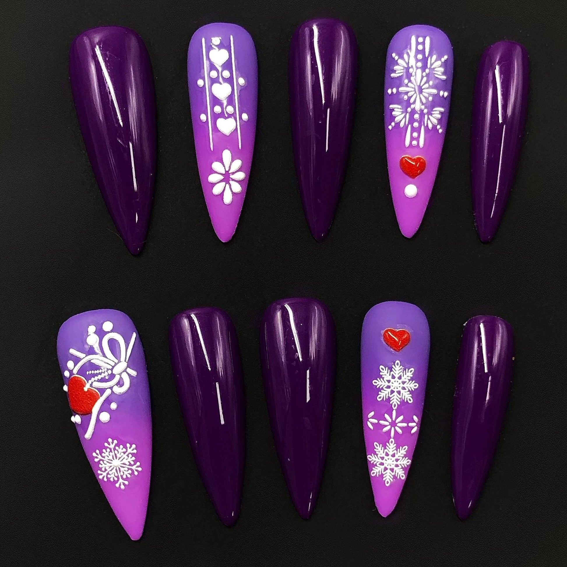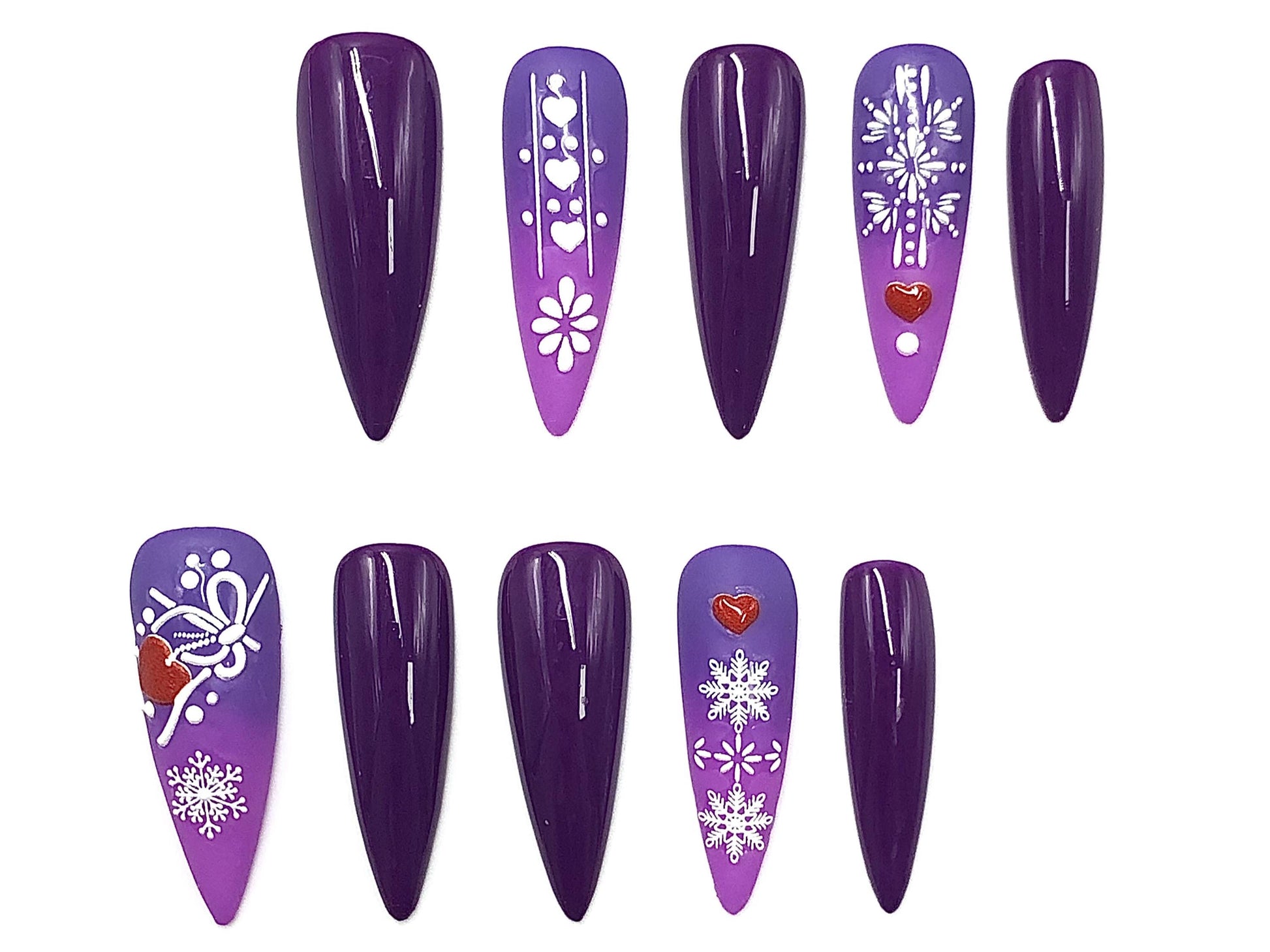 Purple Ombre Winter Wonderland Press-On Nails Artificial reusable fake glue on faux manicure nails trendy art